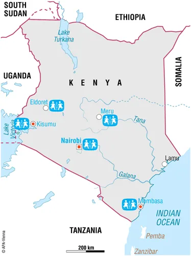 At present there are four SOS Children's Villages, three SOS Youth Facilities, four SOS Kindergartens, four SOS Hermann Gmeiner Schools, one SOS Training Centre, four SOS Social Centres and one SOS Medical Centre in Kenya. Some facts about Kenya The Republic of Kenya’s population is 40.8 million and its capital is Nairobi.