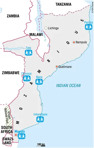 Pemba, capital of the province Cabo Delgado, is a port located about 300 kilometres south of the Tanzanian border.