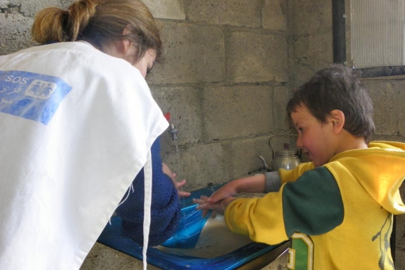 It was a traumatic journey with terrible weather. It was so cold that Omar and his brother lit a fire to keep warm. An accident occurred while tending to the fire and Omar suffered severe burns. There were no opportunities for medical attention, and the family had to continue with their journey for three more days. On arrival to a safer area in Aleppo, Omar and his family met with the team from SOS Children’s Villages Syria.