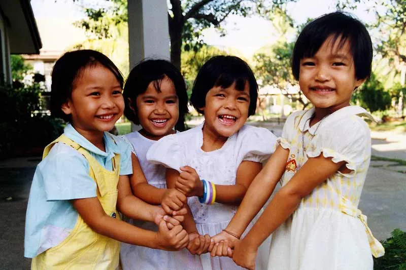 Pim, Chom-Poo, Aoo and Kao were only four years old when they demonstrated their friendship by joining their hands together for a photograph. They were obviously confident and happy, secure in their family environment.