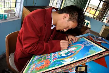 When asked about his future, Chogyal comments, “I want to be a perfect Thangkha painter and want to open a shop and sell my paintings.” He adds that if nothing works for him in India, he could return to his family in Tibet: he longs to show them all the skills he has developed.