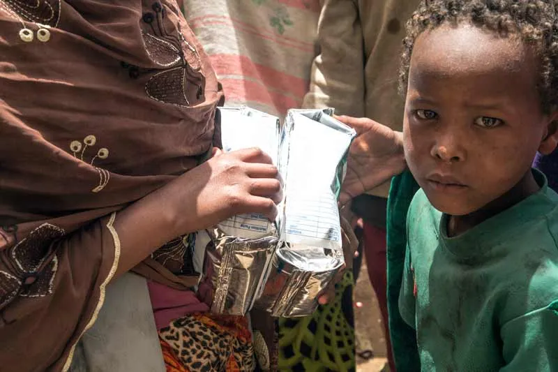 The sealed packages contain cereals that have been designed by the WFP for children aged six months to two years, and to be used as a complement to breast feeding. The ‘super cereal’ is prepared from soya beans, sugar, and a number of vitamins and minerals.